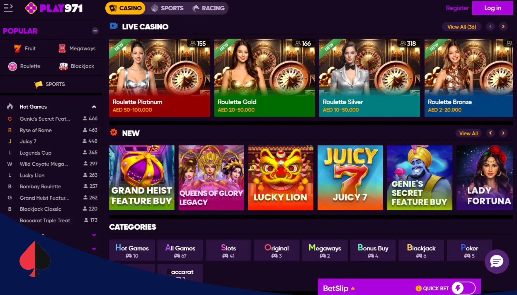 بالحديث عن ألعاب السلوتس التي تستضيفها منصة Play971 casino uae، كان لا بد من الإشارة إلى فئات السلوتس الإضافية التي يوفرها كازينو الامارات اون لاين للاعبين العرب، مثل سلوتس الميجاويز وشراء المكافأة! فهذا التنوع يبرز هوية Play971 website ورغبته الأصيلة في تلبية متطلبات اللاعبين الإماراتيين دائما!